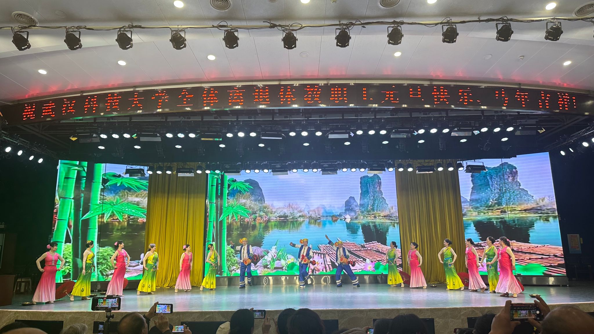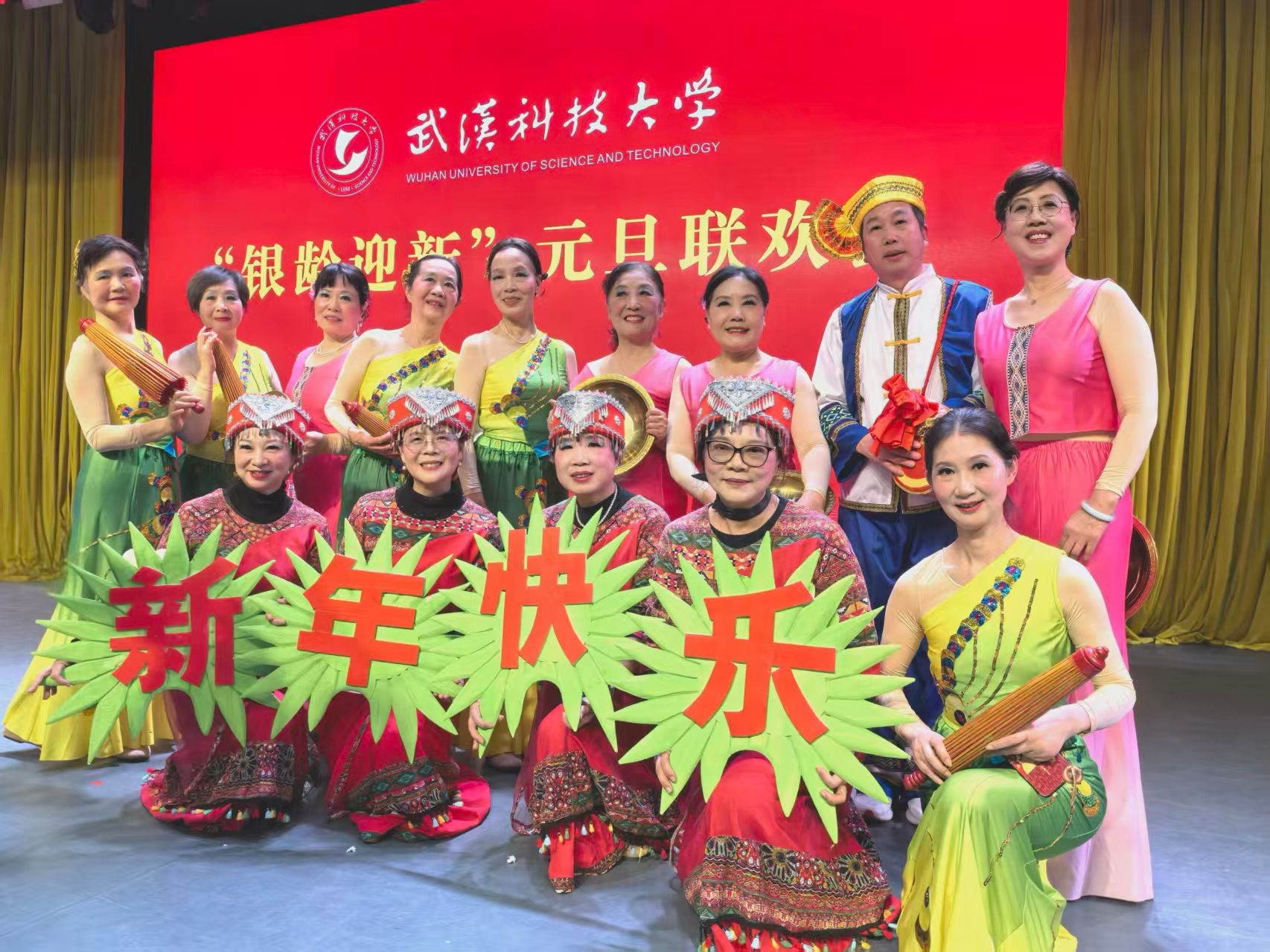 《喜洋洋》《春节序曲》等欢快喜庆的旋律提前点燃欢乐氛围,让到场老同志倍感温馨。联欢会节目精彩纷呈、类型多元,17个节目轮番上演亮点十足。开场舞《福气要来到》由科大幼儿园大班小朋友带来,童真童趣的演绎为现场注入满满活力。随后,洪山舞蹈队《东方红》、医学舞蹈队《沿着社会主义大道奔前方》等红色主题舞蹈深情激昂;武科大老年合唱团《我和我的祖国》、洪山合唱团《春风十万里》等合唱曲目饱含家国情怀;大金操《我们的生活充满阳光》、柔力球《一路歌唱》展现老年健身风采;电吹管合奏《祝福祖国》、二胡独奏《红珊瑚》尽显艺术魅力;时装秀《女人如书》优雅大方,傣族舞蹈《盛世傣韵》则以轻盈舞姿传递民族风情。此外,《学习雷锋好榜样》《弹起我心爱的土琵琶》等经典曲目演唱,引发全场情感共鸣。